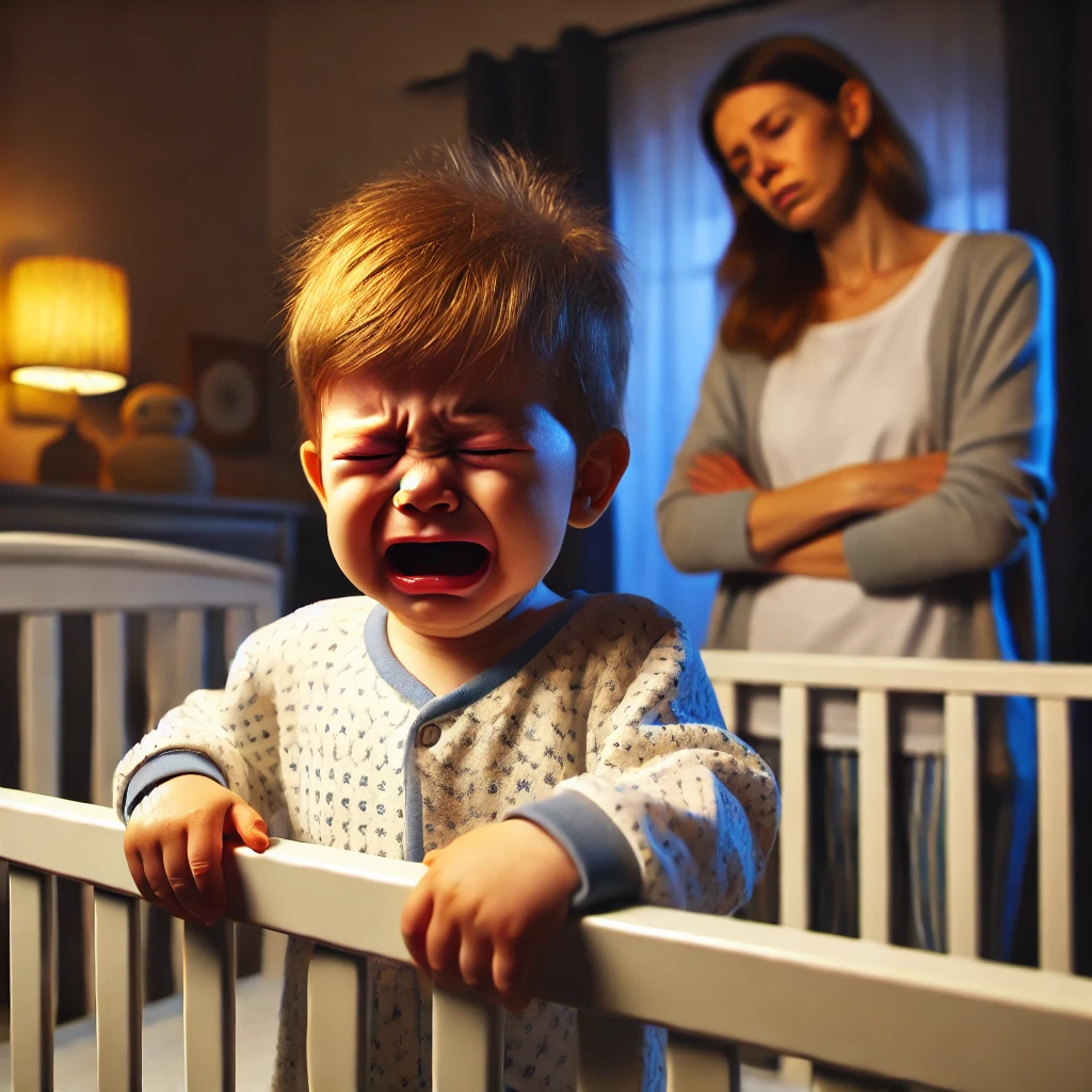 밤에 깨서 엄마가 보이지 않으면 울면서 다시 잠들기 어려워할 수 있어요.
